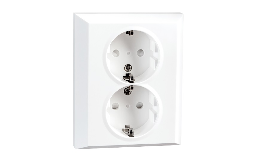 STIKKONTAKT DOBBEL m/JORD INNFELT HVIT Sg Armaturen