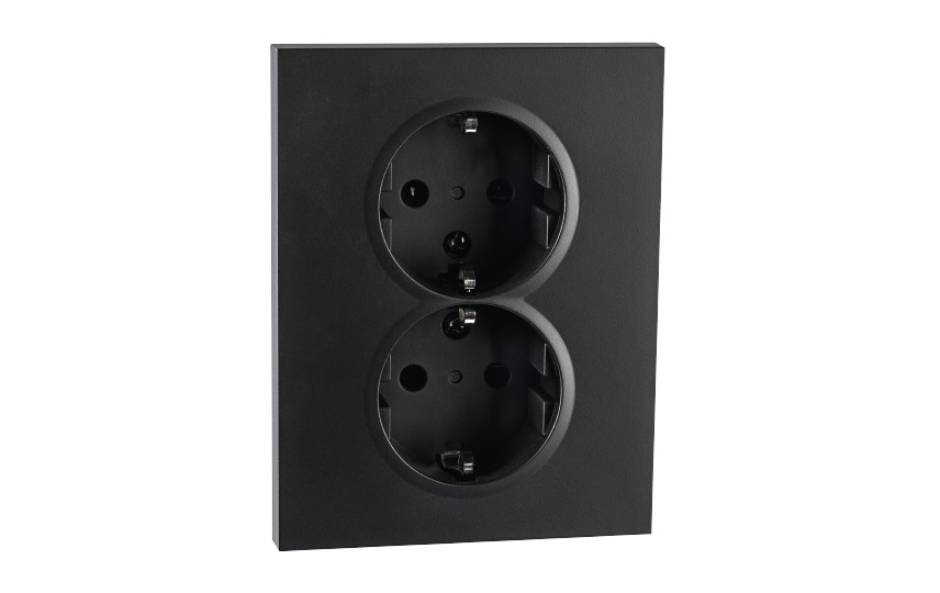STIKKONTAKT DOBBEL m/JORD 1,5 Boks INNFELT SORT Sg Armaturen
