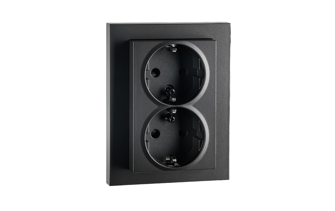 STIKKONTAKT DOBBEL m/JORD Rehab INNFELT SORT Sg Armaturen