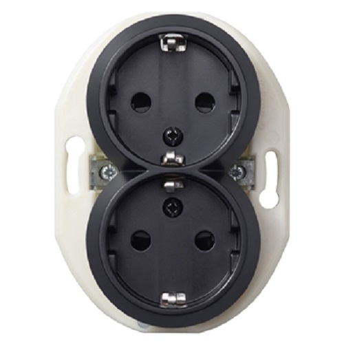 STIKKONTAKT DOBBEL m/Jord RENOVA INNFELT SORT
