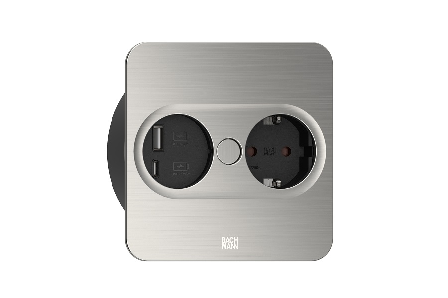 Twist Nedfellbar 1 STIKK+USB A+C lader Rustfri Stål Square IP20 946.005