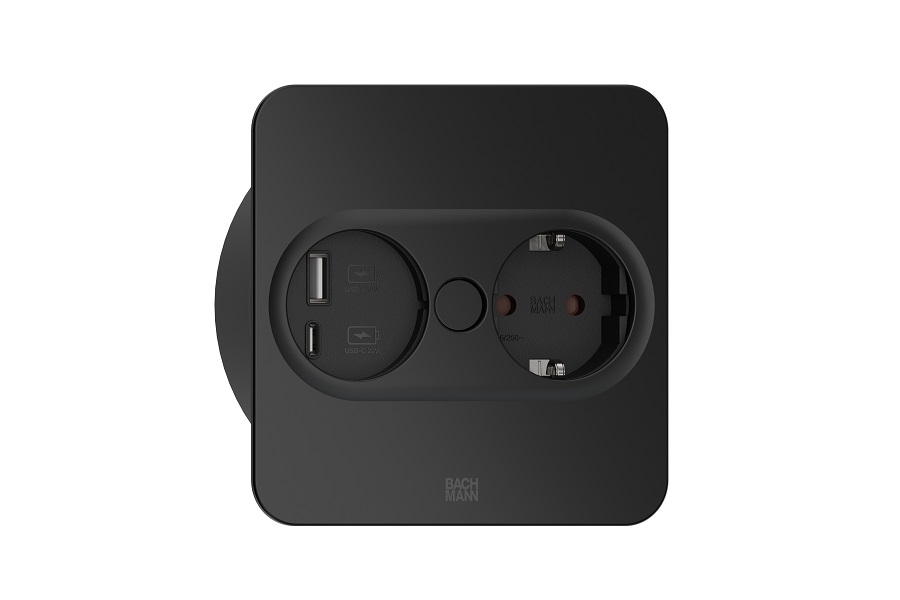 Twist 2 Nedfellbar 1 STIKK+USB A+C lader Matt sort Square IP20 946.105