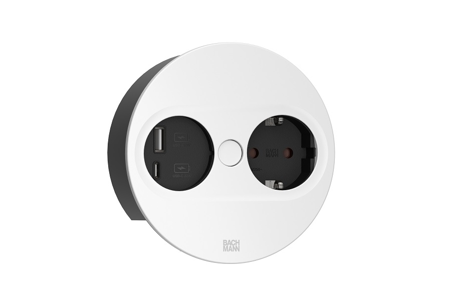 Twist 2 Nedfellbar 1 STIKK+USB A+C lader Matt Hvit Rund IP20 946.204