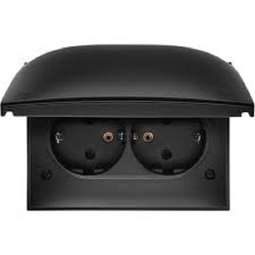 STIKKONTAKT DOBBEL X4 MED KLAPPLOKK IP44 Matt Sort SIMON