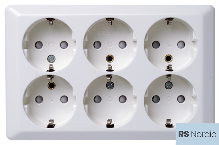 STIKKONTAKT 6 veis Med Jord Påvegg NORDIC HVIT Elko