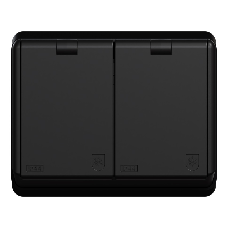 STIKKONTAKT RS1090UPT DOBBEL MED LOKK INNFELT SORT Elko