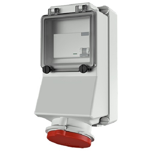 Stikkontakt rundstift 332-6 32A 400V påv. Rød 4p m/jordfeilbryter IP44 7127