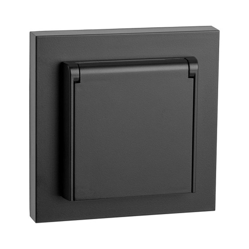 STIKKONTAKT ENKEL MED LOKK INNFELT Sort IP44 77131 Sg Armaturen