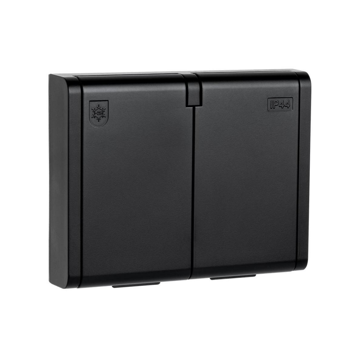 STIKKONTAKT DOBBEL MED LOKK INNFELT Sort IP44 Sg Armaturen