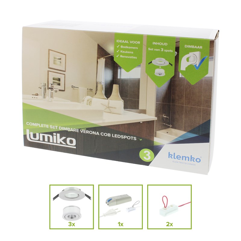 VERONA KIT 3x COB 3,3W m/driver 350mA 3000K ALU Klemko