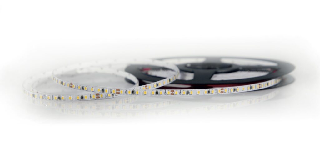 Led-strips IP20 24V 4,5W/m 120lm/w/540lm 2700K Pr,meter 5M 4mm bred Qlt