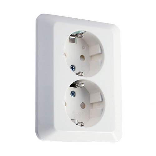 STIKKONTAKT DOBBEL MED JORD INNF 1,5 veggboks HVIT EGANT