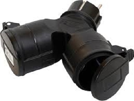 DOBBELTSTØPSEL UTE MED JORD 16A SORT IP44 BLISTER