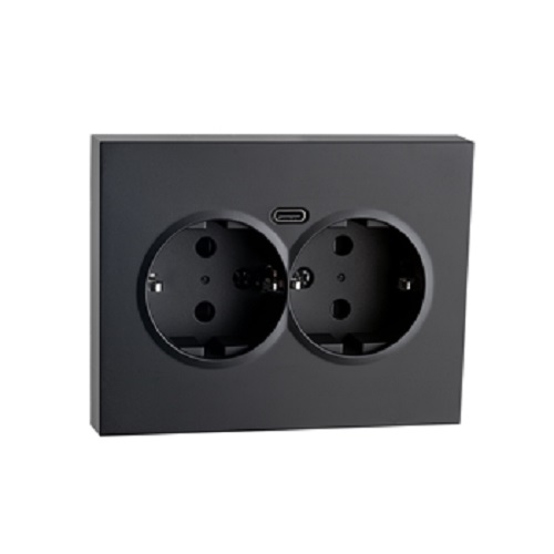 STIKKONTAKT DOBBEL+ 2x USB C INNFELT SORT Sg Armaturen