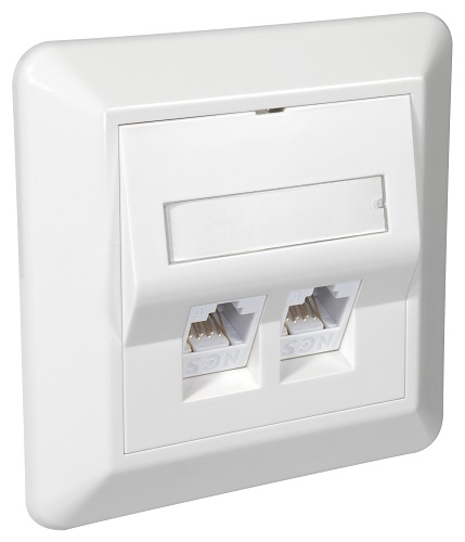 VEGGKONTAKT 2xCAT 6 UTP SKRÅ RS QuickComp HVIT LANSE