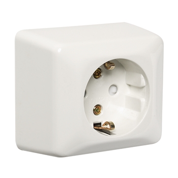 STIKKONTAKT MED JORD ENKEL 1013 PT PÅVEGG HVIT BLISTER