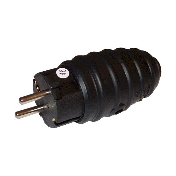 STØPSEL RETT M/JORD 16A SORT GUMMIERT BLISTER