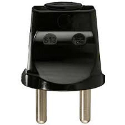 STØPSEL RETT 613 UTEN JORD 16A SORT BLISTER
