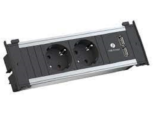 INDESK STIKKONTAKT 3X16A +2xUSB MED 2m KABEL SØLV