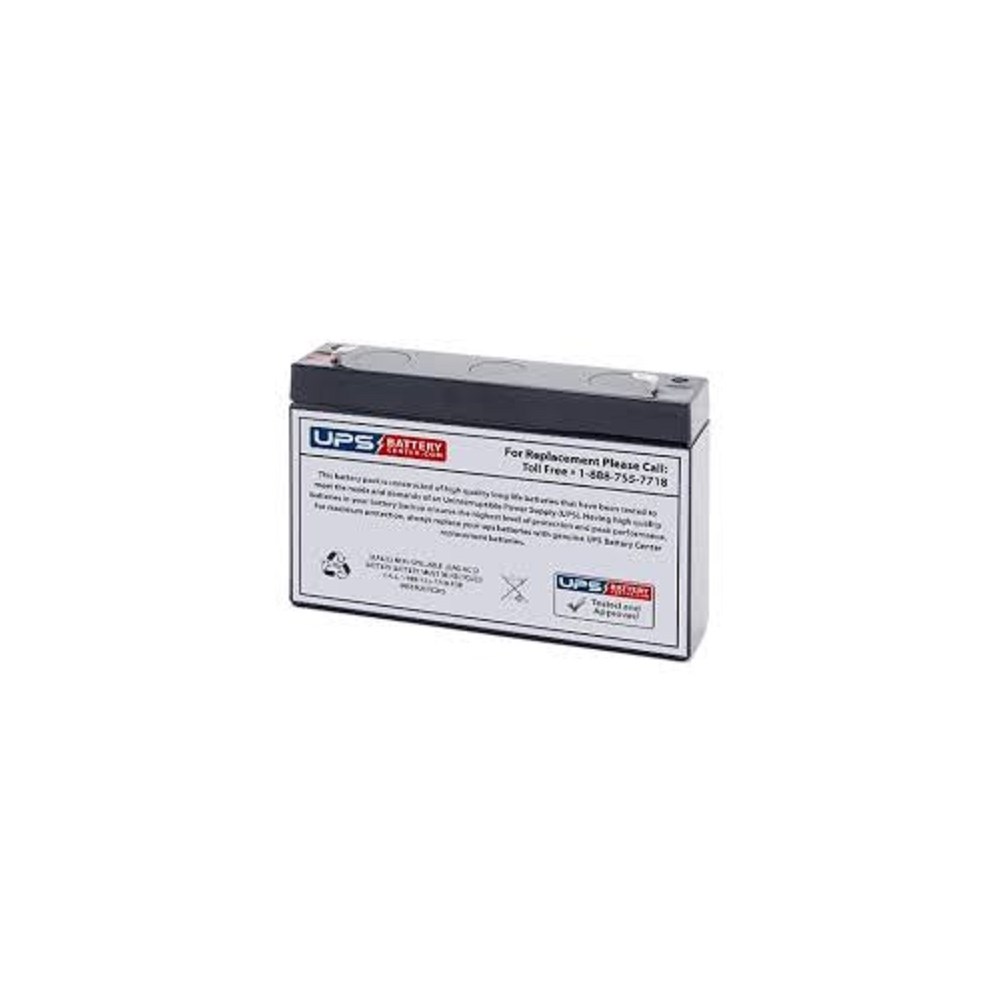 Volt: 6 Ah: 7 Lengde: 151 mm Bredde: 34 mm Høyde: 97,5 Vekt: 1,26 kg Terminal: 4,8mm flatstift Kjemi: Bly (Pb) Levetid: 3-5 Elnummer: 6202604 Info: Blybatteri 6 Volt 7 Ah Diverse: Flatstift 4,8mm,