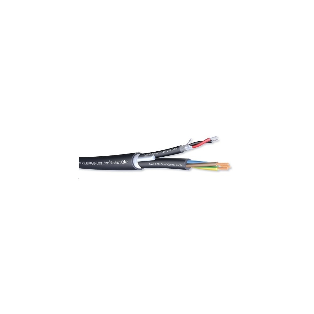 Hybridkabel strøm + signal typisk egnet for mobile applikasjoner. 3 x 1,5mm2 for strøm og 1 par 110 ohms signal (DMX, AES/EBU, RS-485) - 1 par AWG 22 (signal) - Power: 3 x 1,5mm2 - Flertrådet kobberledere - Isolert med Polyethylene - Flettet kobber skjerm + Alu/PET tape for signalparet - Kappe i TPM - UV resistent - Kappefarge sort - Ytterdiameter 14,6mm - Fargekode iht. datablad