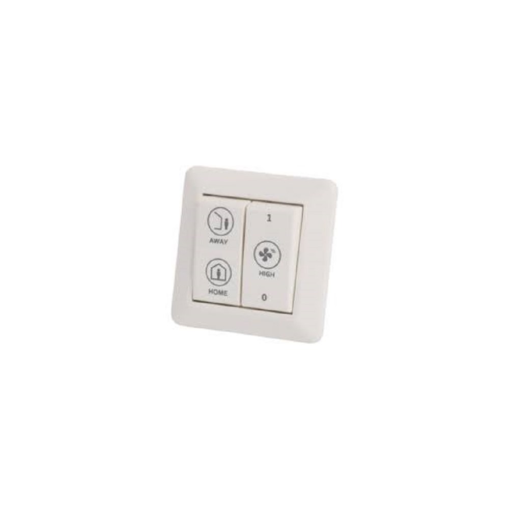 Styrepanel for innfelt montering. Med panelet kan man velge injustert luftmengde for hjemme, borte og starte forsering.