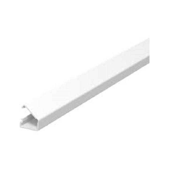 Minikanal med tape, og hengslet overdel. Kanalen limes direkte på underlaget, som må være støvfritt og rent. LxBxH : 2000x13x7mm Farge: Renhvit RAL9010 Materiale: PVC