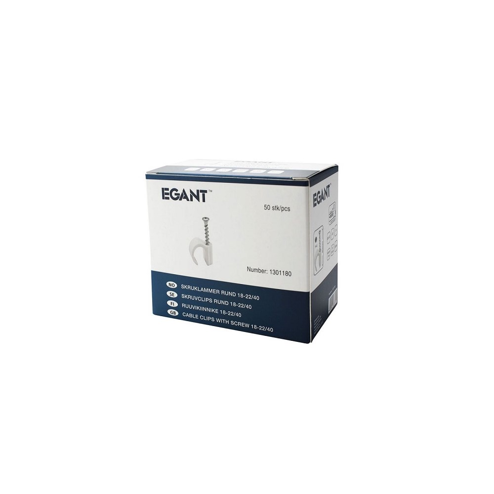 pris pr stk leveres i eske a 50 stk. skrueklammer for 18-22mm rund kabel av hvit UV-bestandig plast. Klips halogenfri korrosivitetsklasse C4. Med skrue 40mm.