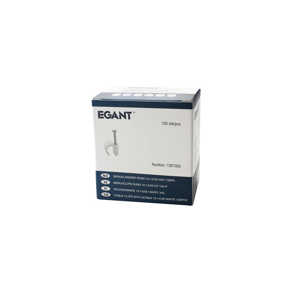 pris pr stk leveres i eske a 100 stk. skrueklammer for 10-14mm rund kabel av hvit UV-bestandig plast. Klips halogenfri korrosivitetsklasse C4. Med skrue 37mm.