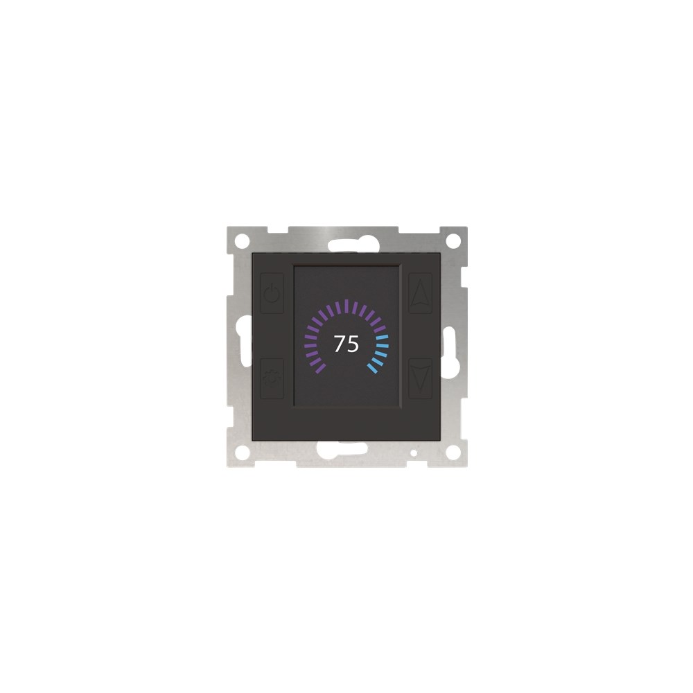 mTouch® Dim viser innstilt lysnivå i LCD-display og justeres med touchknapper opp/ned. Selvforklarende meny for enkel justering av innstillinger, f.eks. maks-/min-nivå, romnavn, tid/dato, stegdimming. Valgfri farge på skjermbakgrunn og tekst. Tekniske data Spenning: 230 VAC (+/- 10%) 50/60 Hz Last: 250 VA (Se lasttabell) Lysnivå: 1-99 Materiale: Plast IP-grad: 20 Dimensjoner: Passer ELKO RS16 og Schneider Exxact