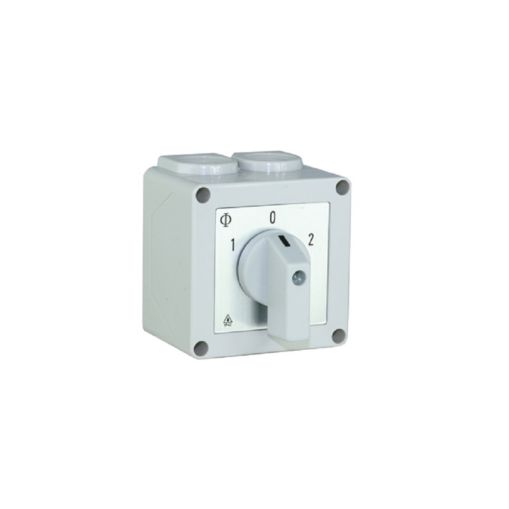 KAMBRYTER for markise/persienne 1-0-2 2P/20A i kapsling IP65 med fjær retur fra både 1 og 2.