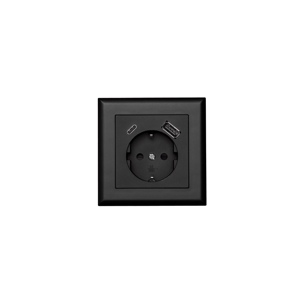 STIKKONTAKT FJORD M/JORD OG USB A+C INNFELT Matt Sort EGANT