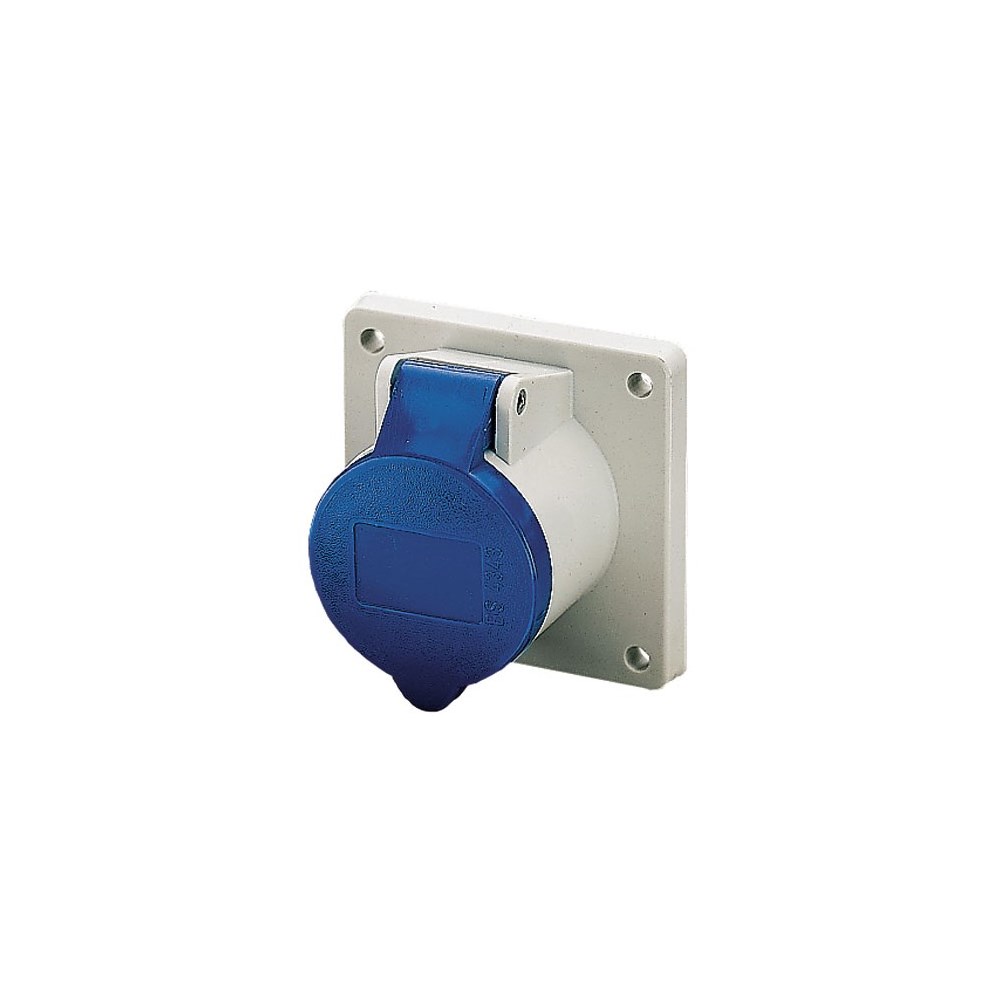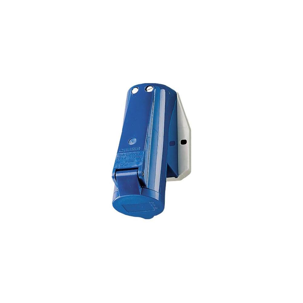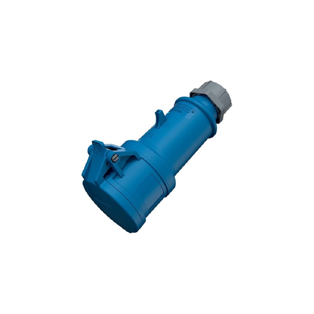 Støpsel 3 P+ J 16A 230V IP44 blå med klemmer med skrutilkobling min 1,0mm2 max 2,5mm2 og utvendig strekkavlaster.Fasevendbar