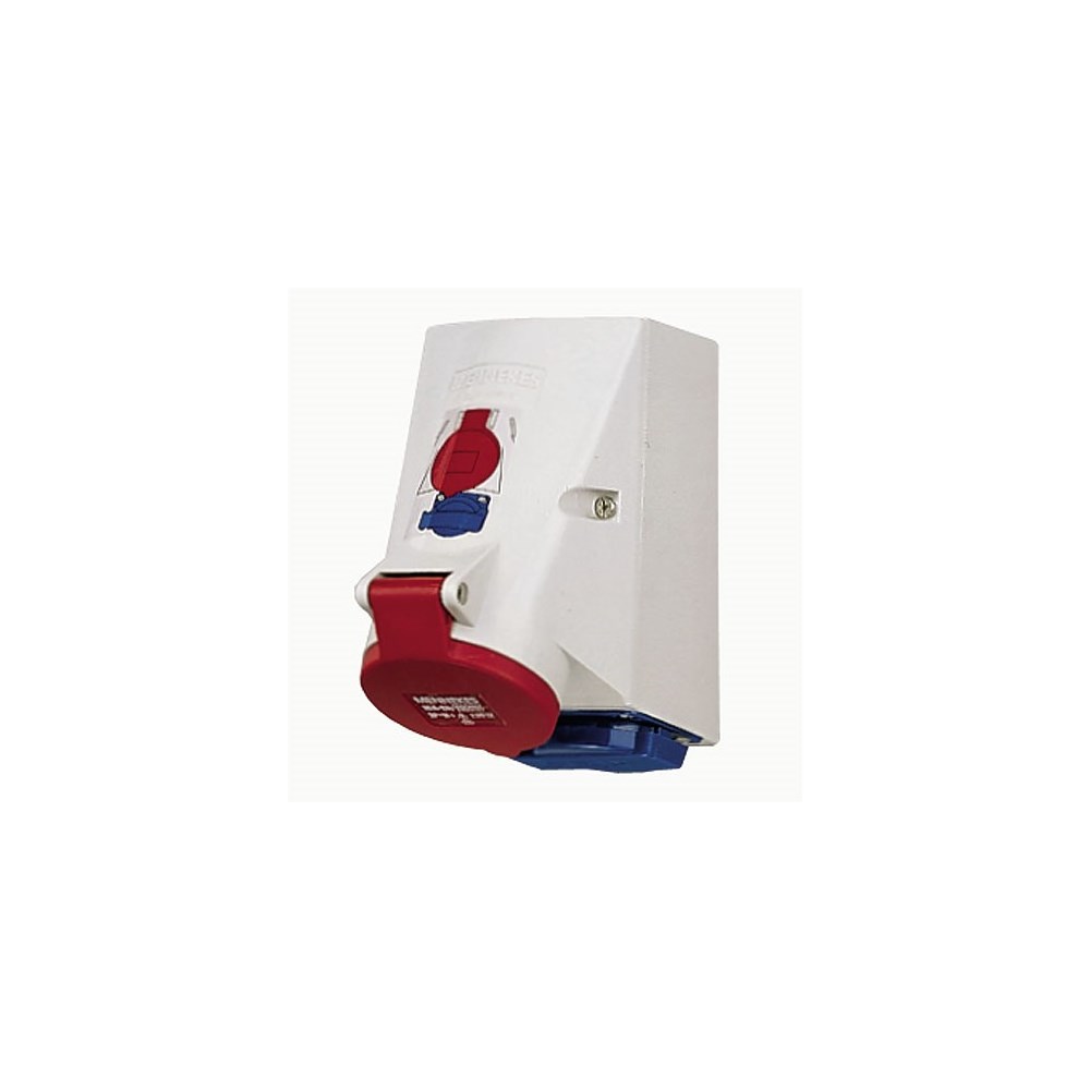 Støpsel 3 fas + nøytal + jord 16A 400V IP44 rød med klemmer med skrutilkobling min 1,0mm2 max 2,5mm2 og utvendig strekkavlaster