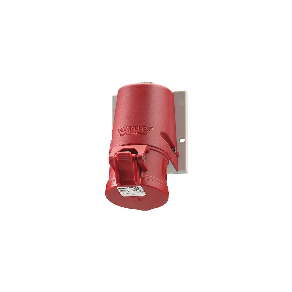 Støpsel 3 fas + nøytal + jord 32A 400V IP44 rød med klemmer med skrutilkobling min 2,5mm2 max 6,0mm2 og utvendig strekkavlaster Fasevendbar