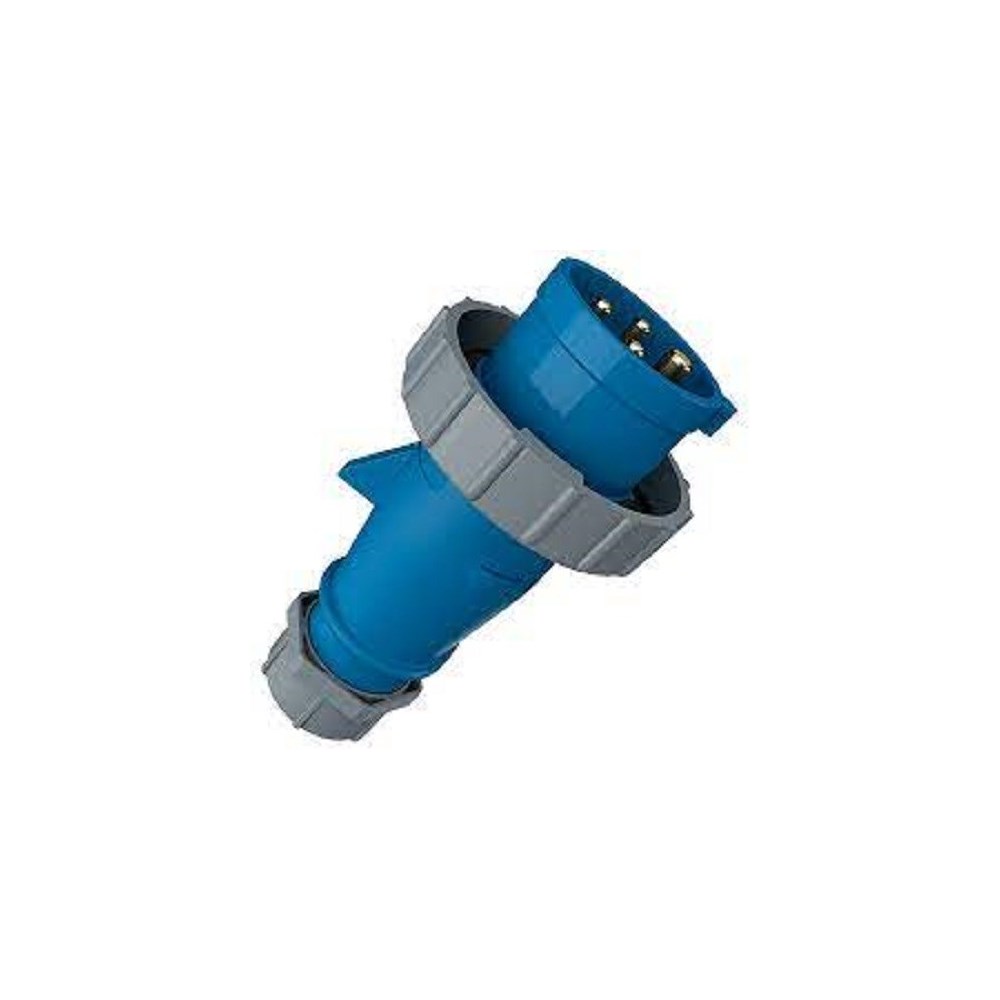 Stikkontakt 3 fas + jord 16A 230V IP67 blå med klemmer med skrutilkobling min 1,5mm2 max 4,0mm2 og nippel M25