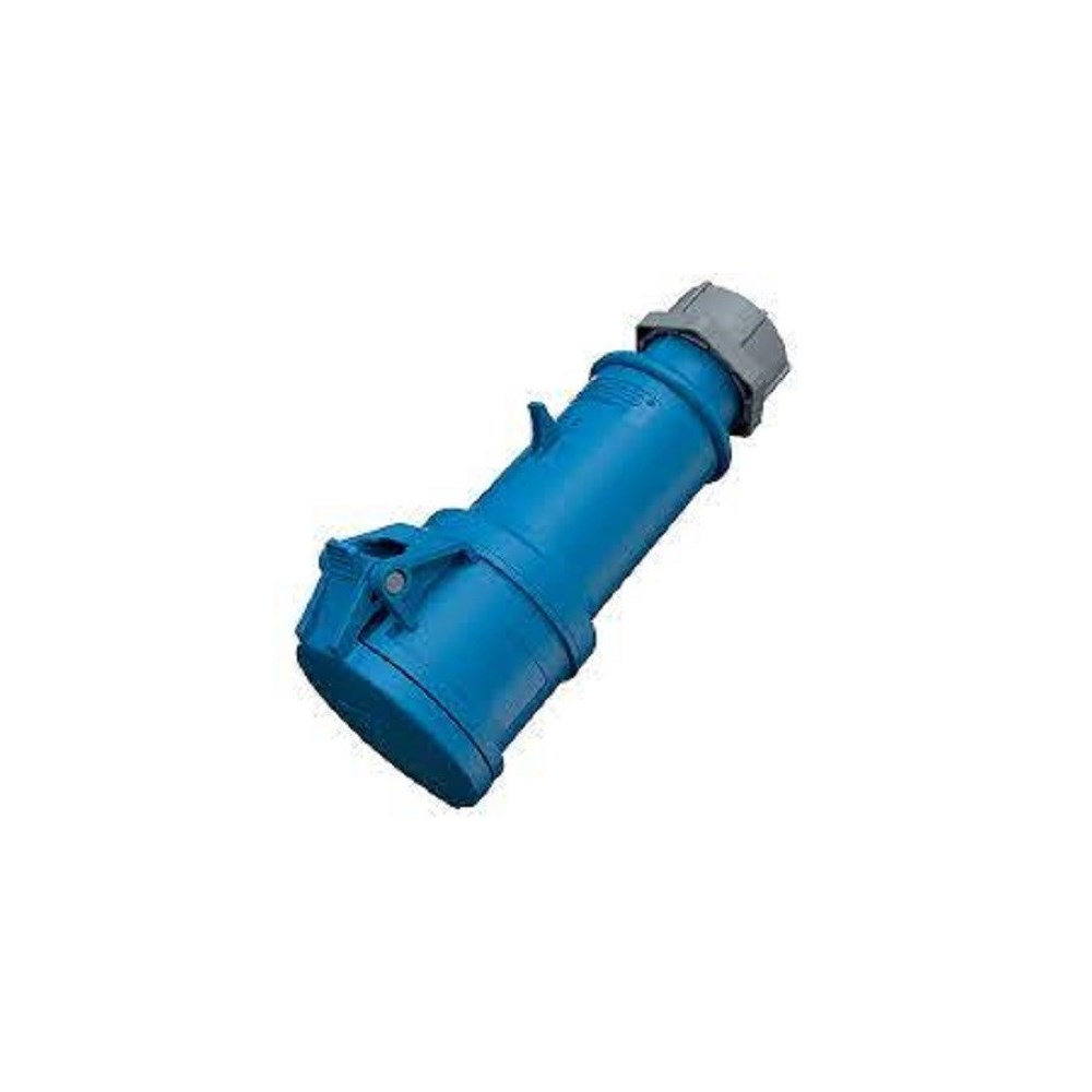Apparat inntak påvegg 3 fas + jord 32A 230V IP44 blå med klemmer med skrutilkobling min 2,5mm2 max 6,0mm2 nippel M25