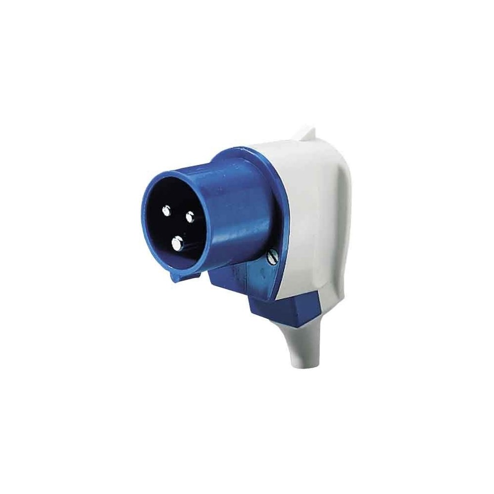 Apparatinntak innfelt skrå 2 fas +jord 16A 230V IP44 blå med klemmer med skrutilkobling min 1,0mm2 max 2,5mm2