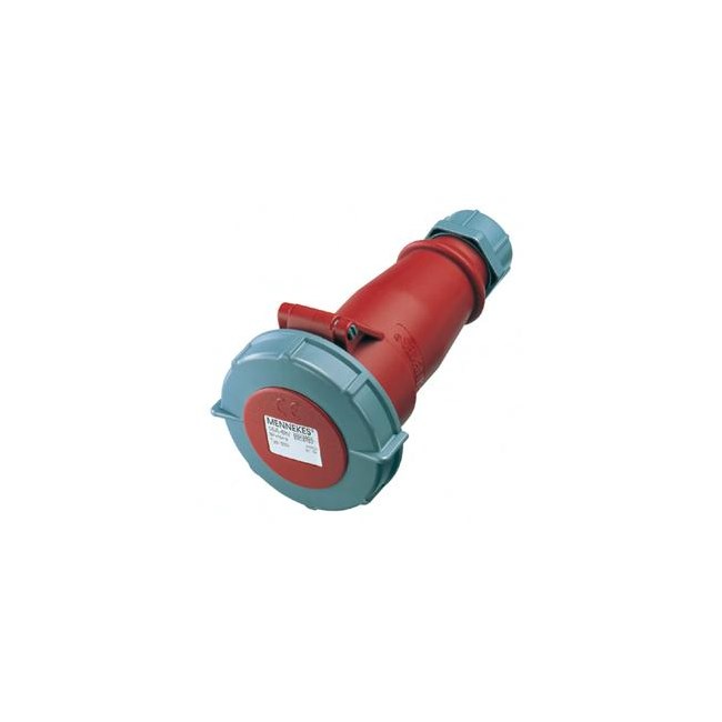Skjøtekontakt 3 fas + jord 16A 400V IP67 rød med klemmer med skrutilkobling min 1,0mm2 max 2,5mm2 og utvendig strekkavlaster.Varmebestandig kontakt terminaler. Nickel pletterte kontakter.Gummiert gripevennlig hus