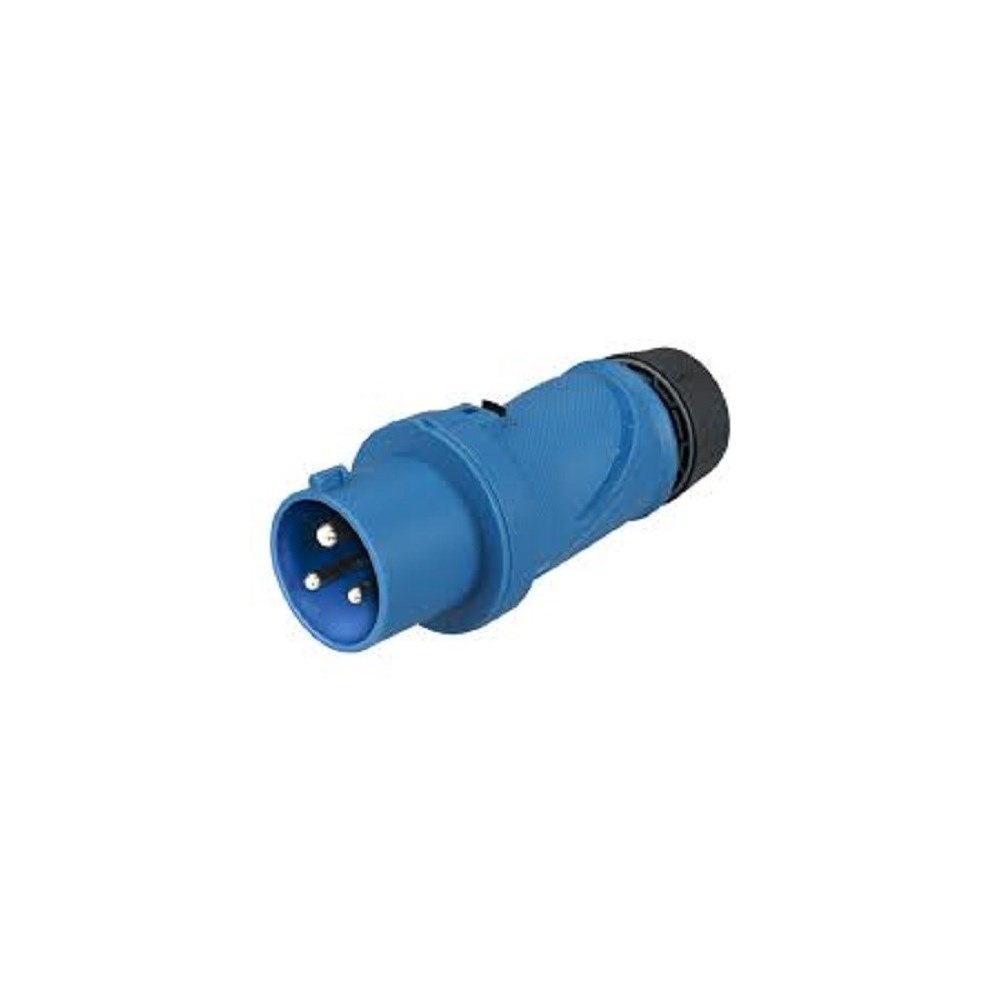 Stikkontakt 2 fas + jord 32A 230V IP44 blå med klemmer med skrutilkobling min 2,50mm2 max 6,0mm2 og utvendig strekkavlaster.Varmebestandig kontakt terminaler. Nickel pletterte kontakter