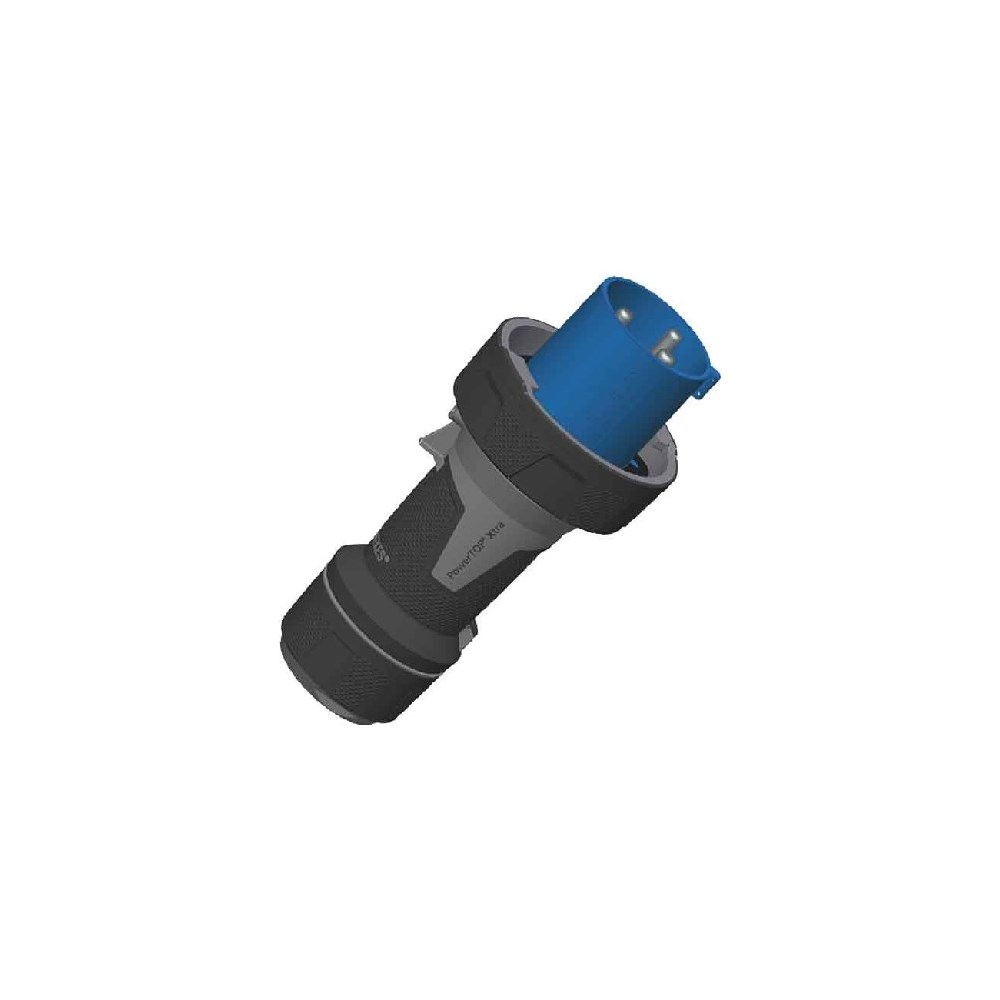 Stikkontakt 2 fas + jord 63A 230V IP67 blå med klemmer med skrutilkobling min 16mm2 max 50,0mm2 og utvendig strekkavlaster.Varmebestandig kontakt terminaler. Nickel pletterte kontakter
