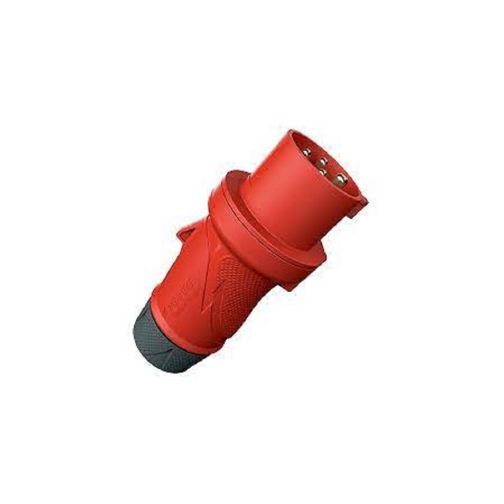Stikkontakt 3 fas + jord 32A 400V IP44 rød med klemmer med skrutilkobling min 2,5mm2 max 6,0mm2 og utvendig strekkavlaster