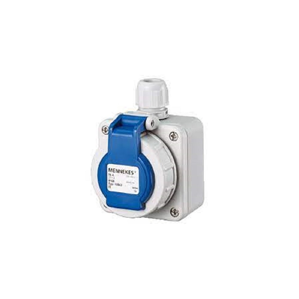 STØPSEL 16A 230V (FOR 3G2,5) BLÅ MED LOKK IP68 M10828 Mennekes