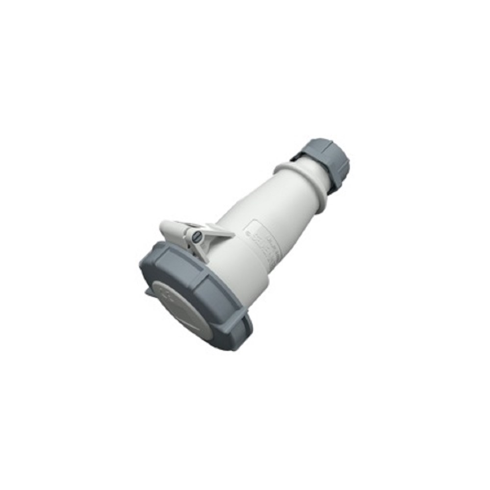 Støpsel 2 fas + jord 16A 230V IP67 grå med klemmer med skrutilkobling min 1,5mm2 max 4,0mm2 og nippel M25