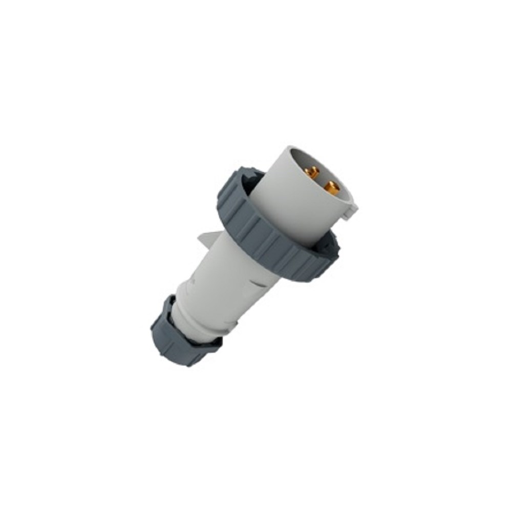 Skjøtekontakt rundstift 2 fas + jord 16A 230V IP67 grå med klemmer med skrutilkobling min 1,5mm2 max 4,0mm2 og nippel M25