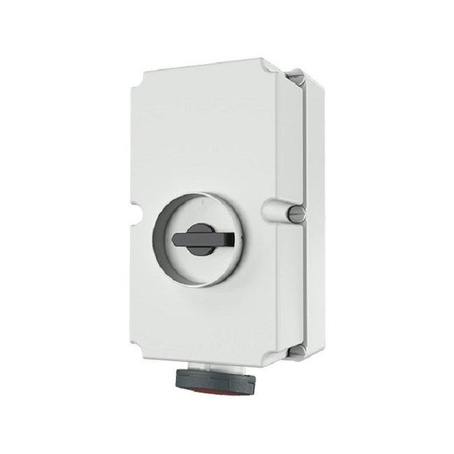 Stikkontakt rundstift interlocked m/bryter DUO 3125-6 400V IP67 5691A