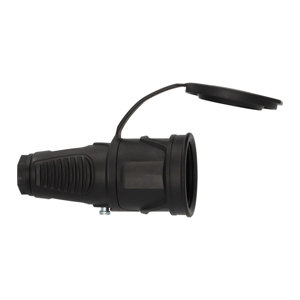 Støpsel IP44 2/16 +jord produsert i gummi med thermoplast innmat og knekk beskytter for kabel.Kabel opp til 3G2,5 kan tilkobles på klemmene. Tåler temperatutrer fra -40 til 70 grader celsius.Produsert med clickinn funksjon for å passe inn i 1503978 og 1503980 for å skape en sikker og tett kobling
