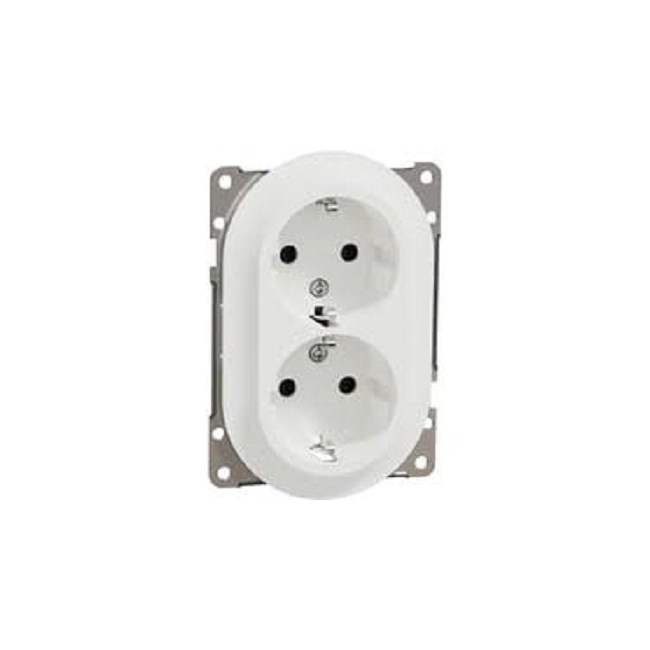 ELKO One lav dobbel stikkontakt. Stikkontakten installeres med ELKO sin nyeste utvikling av hurtigklemmetilkobling, som gjør installasjonen rask, enkel og trygg. Lav stikkontakt uten ramme og bygger kun 9mm ut fra veggen, passer kun i 1,5 veggboks. Rammer selges separat, og vil passe i en dobbelstikkontaktramme 2-5 hull for innfelt montering. Ue-nominell driftsspenning er 250VAC ved 50/60Hz, og Ie-nominelle driftsstrøm er 16A. Mål på produktet er (B) 71mm x (H) 106mm x (D) 42mm. Produktet er laget av resirkulert polykarbonat (PC) og fargen er renhvit (RAL 9003) med en matt overflate. IP grad er IP21. ELKO One-serien har et minimalistisk og slankt design med silkematt overflate. Serien dekker installasjonsmateriell, frittstående elektronikk og nettverksfunksjoner for både innfelt og påveggsmontering. Serien er også utviklet med bruk av resirkulert plast (alle estetiske deler, hvorav 40 % på renhvit og 95 % på sort), samt resirkulert emballasje.