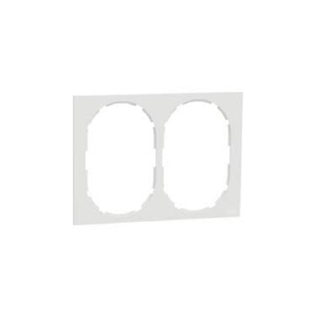 ELKO One 2 hulls ramme. For horisontal montering av dobbelstikk. Installeres med enkel- eller 1,5 veggboks. Produktet er designet til å monteres innfelt. Mål på produktet er (B) 158 mm x (H) 117 mm x (D) 5 mm. Produktet er laget av resirkulert polykarbonat (PC) og fargen er renhvit (RAL 9003) med en matt overflate. IP grad er IP21. ELKO One-serien har et minimalistisk og slankt design med silkematt overflate. Serien dekker installasjonsmateriell, frittstående elektronikk og nettverksfunksjoner for både innfelt og påveggsmontering. Serien er også utviklet med bruk av resirkulert plast (alle estetiske deler, hvorav 40 % på renhvit og 95 % på sort), samt resirkulert emballasje.