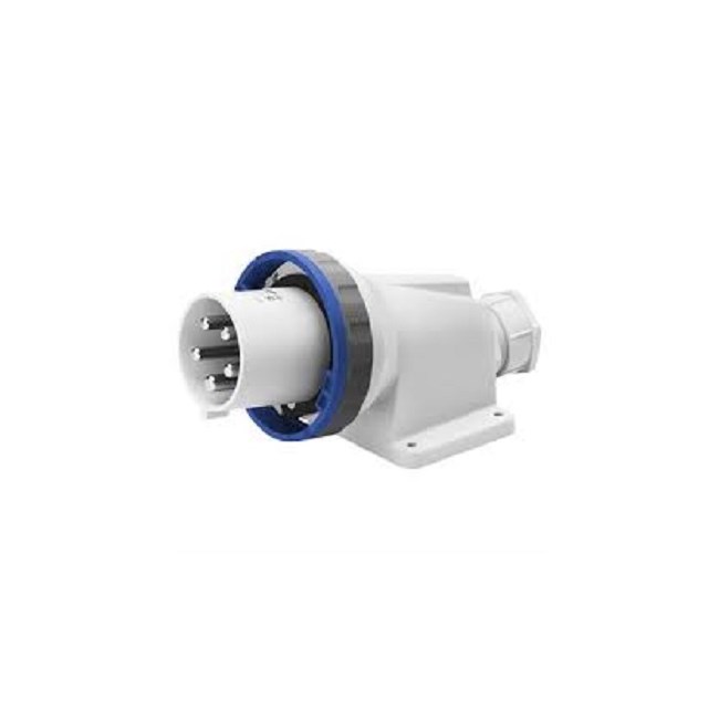 Apparatinntak 3 fas + jord 125A 230V IP67 blå med klemmer med skrutilkobling min 16,0mm2 max 50mm2 og utvendig strekkavlaster